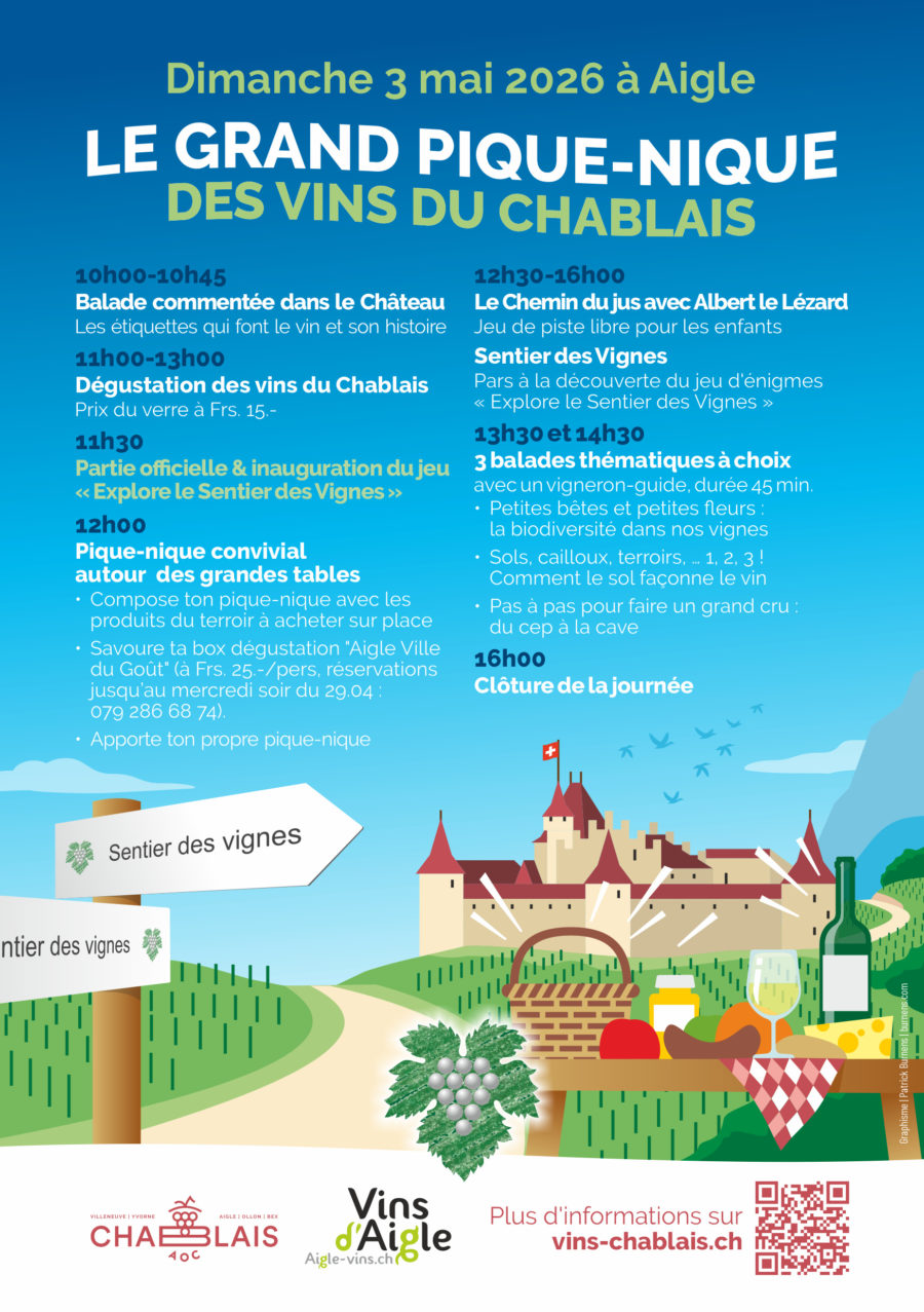 On the agenda: a guided tour of the château, a tasting of Chablais wines, a picnic, a scavenger hunt, and guided walks with local winemakers.